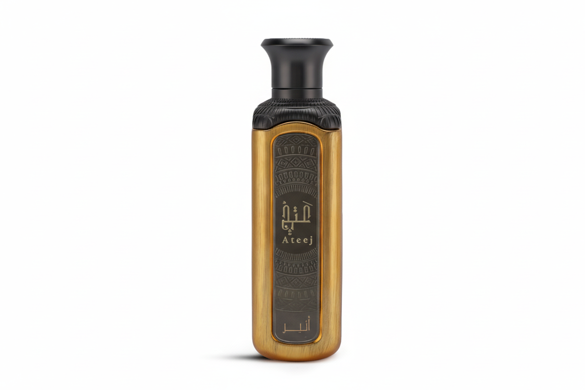 A refined expression of warmth and elegance, Ateej Atheer envelops the senses with a luminous opening that gracefully melts into a floral heart. The fragrance settles into a smooth, comforting base of woods and musk, leaving behind a soft yet confident trail that feels timeless and effortlessly sophisticated.